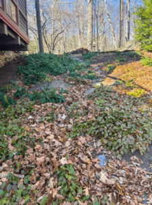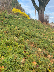 A thick layer of dried leaves tried its best to hide the groundcover beneath but after 15+ years in the industry, I can spot plumbago even in winter camouflage.
